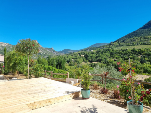 Au milieu des vignes, à 5 minutes de Nyons, Villa de 2009 sur un terrain de 4000m² et son jardin d'Éden de 2500m²! Coup de foudre assuré! Vous n'avez qu'à poser vos valises et aller profiter de la piscine chauffée ou d'un café dans un de ses salons de jardin. Prestations de qualité; Chauffage au sol avec antigel, Four à Pizza/pain/Gratin..., Cuisine ouverte réalisé par un cuisiniste, arrière-cuisine, Huisserie en bois exotique et double vitrage, toutes portes intérieures en bois Fraqué, Piscine avec pompe à chaleur réversible et traitement a l'oxygène actif. Derrière la villa, un local professionnel (80 m²) a été créé, parfait pour y installer son bureau et y bricoler. Venez voir, ne tardez pas!
